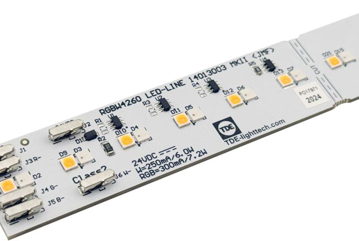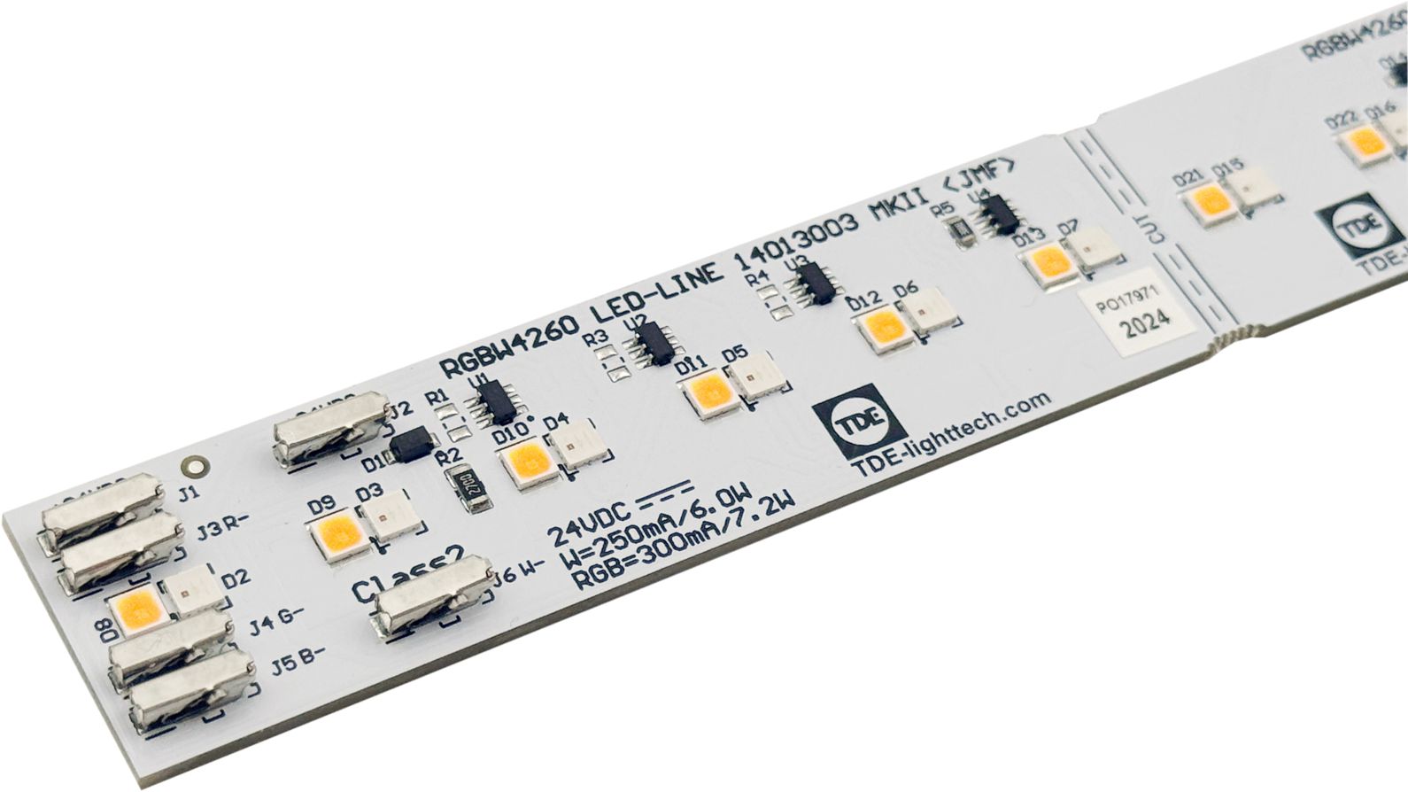 The MoodLine WRGB1465 linear LED-module is a constant voltage LED assembly with built-in current controlled LED control circuits for long lifespan and uniform illumination.